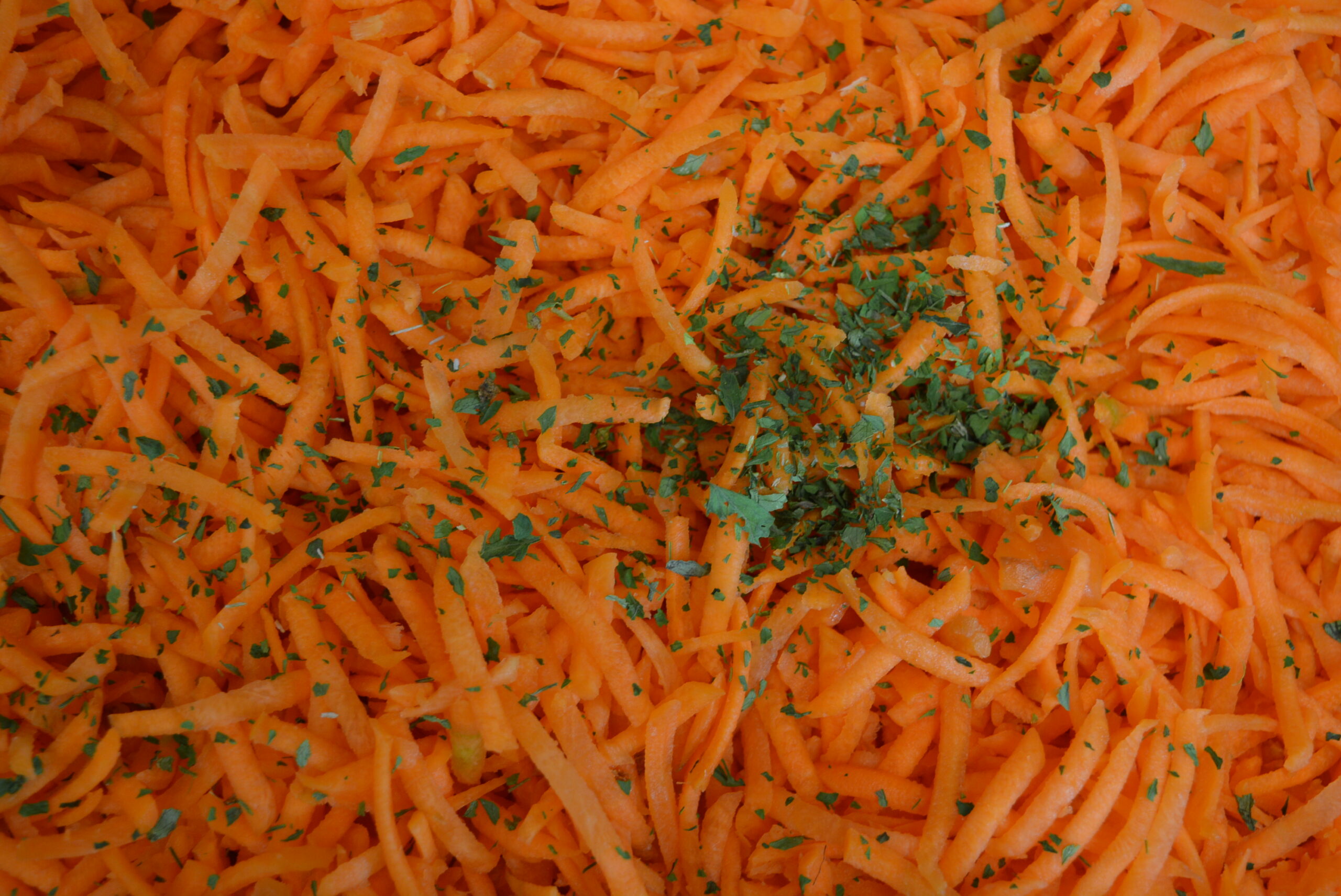 Carottes râpées — salade fraîche et croquante, relevée d’une vinaigrette légère.