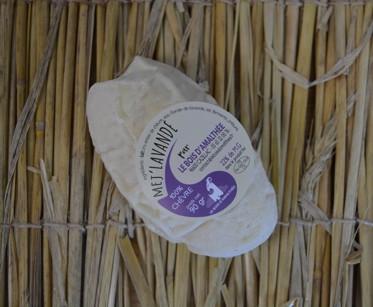 Mej O Lavande — fromage original aux notes florales, parfumé délicatement à la lavande. Délicieux avec des fruits secs et un verre de Sancerre Blanc AOC 2022.