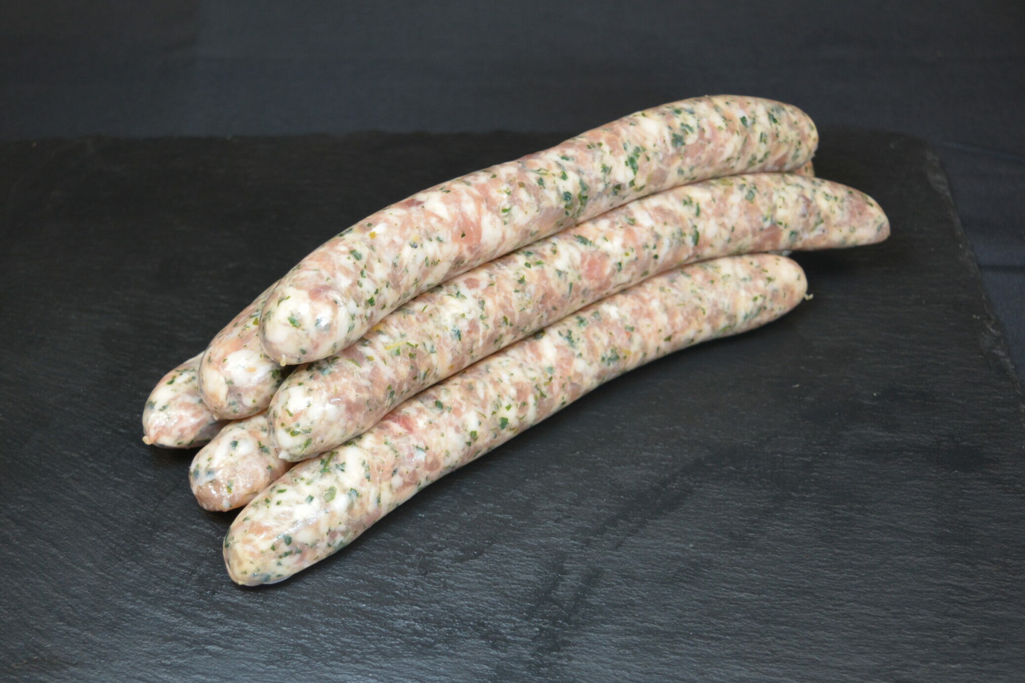 Chipolata aux herbes — saucisse parfumée aux herbes aromatiques, parfaite grillée ou poêlée pour relever vos repas.