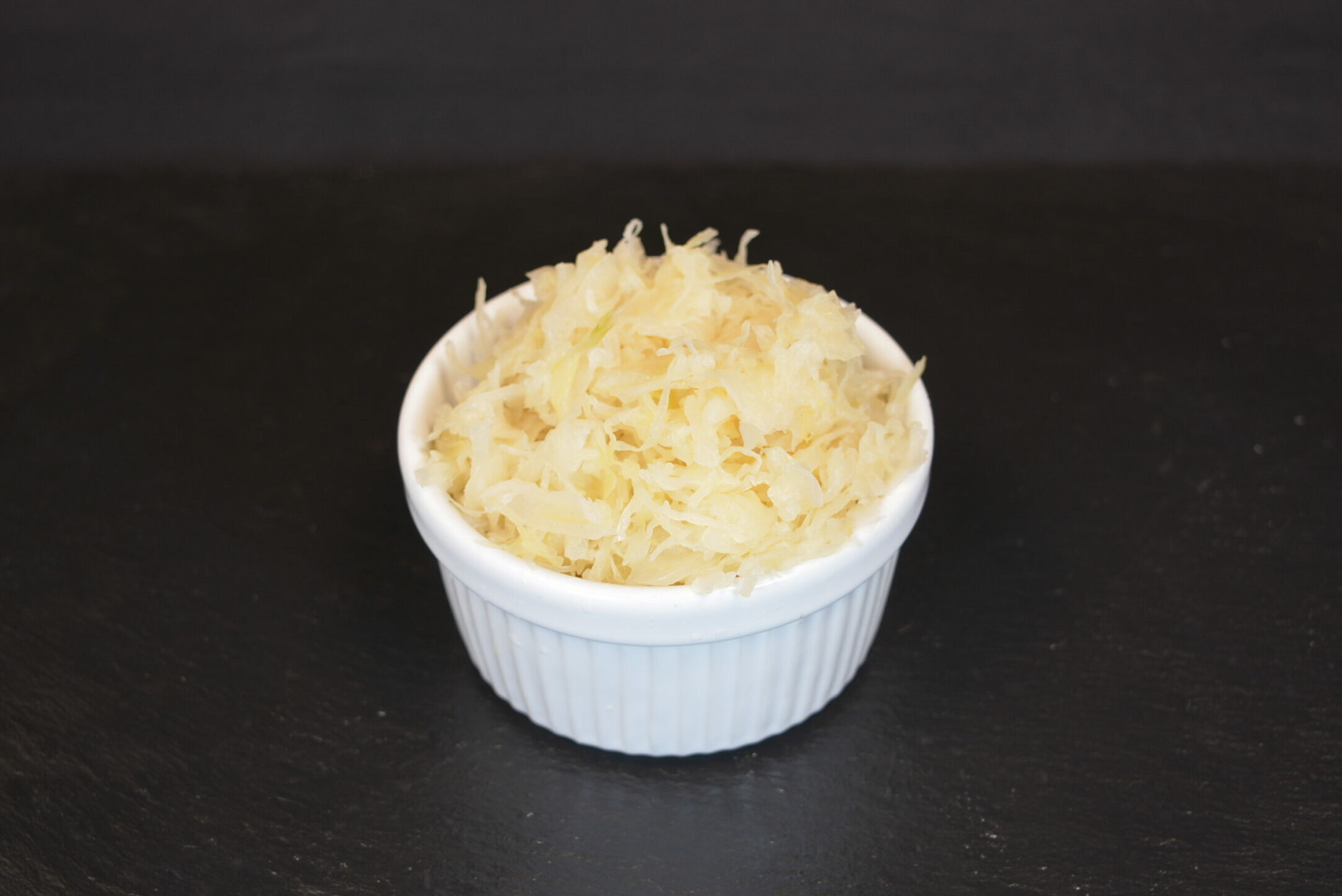 Choucroute — chou finement fermenté, préparé selon la tradition. Délicieux avec charcuterie et viandes fumées.